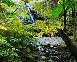 The 25 foot Hemlock Falls are found within the South Mountain Reservation (Essex County). Leaving from the Summit Field parking areas, your short hike (less than 2 miles round trip) will bring you the beautiful landscape of the park.